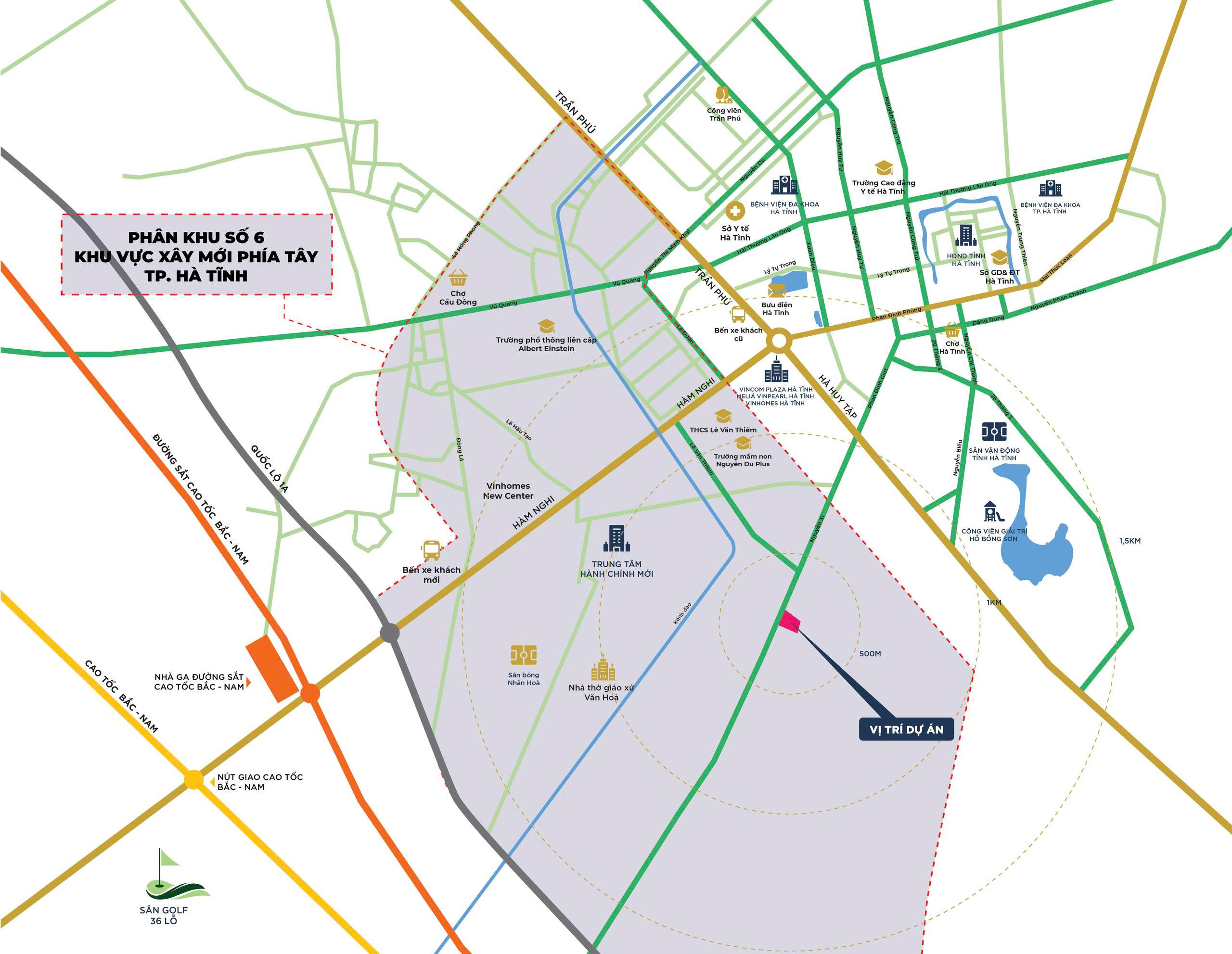 Từ vị trí dự án, cư dân có thể dễ dàng tiếp cận hệ thống tiện ích hiện hữu như các cơ quan hành chính, cơ sở ý tế, giáo dục, dịch vụ thương mại của thành phố. Đồng thời, khu vực này còn được hưởng lợi từ mạng lưới giao thông chiến lược gồm QL1A, QL1B, tuyến cao tốc Bắc – Nam và quy hoạch đường sắt tốc độ cao Bắc – Nam… tạo điều kiện kết nối thuận lợi với các trung tâm kinh tế lớn như Hà Nội và Vinh.